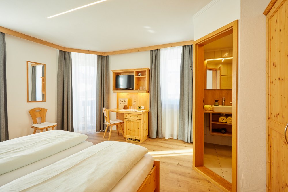 La camera al secondo piano della casa rustica, rinnovata con amore in 2026, è arredata di mobili in legno, con doccia e bagno, televisione, frigobar, bollitore d´acqua e balcone. Vi aspetta un buffet di colazione abbondante con pane, uova, burro, latte e yoghurt - tutto fatto in casa. WIFI gratis